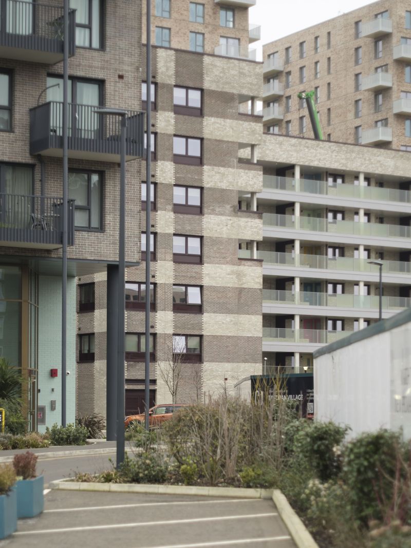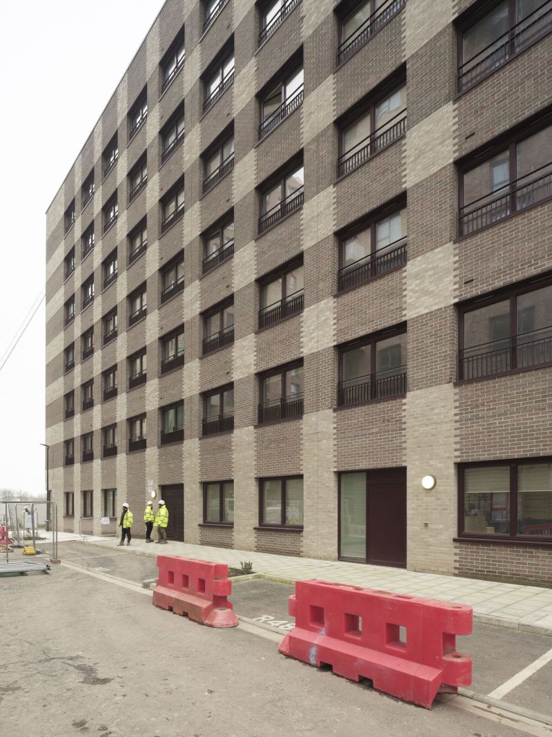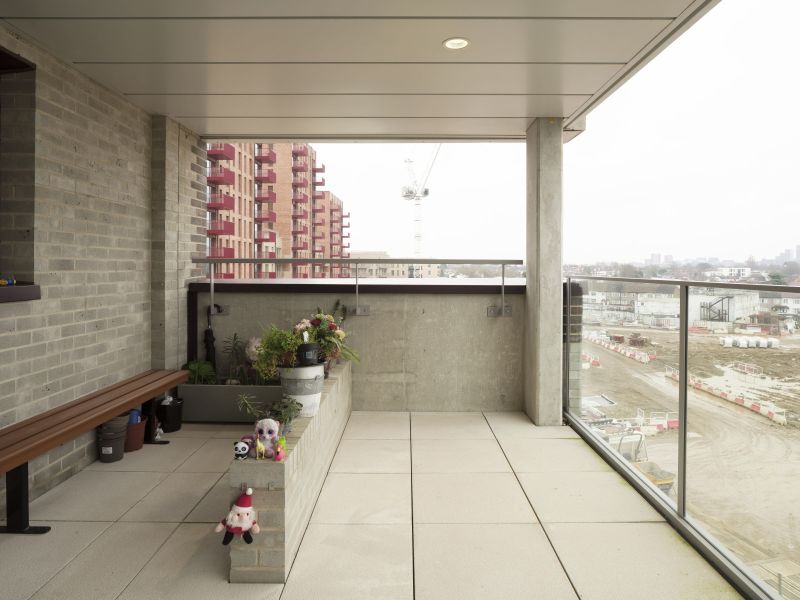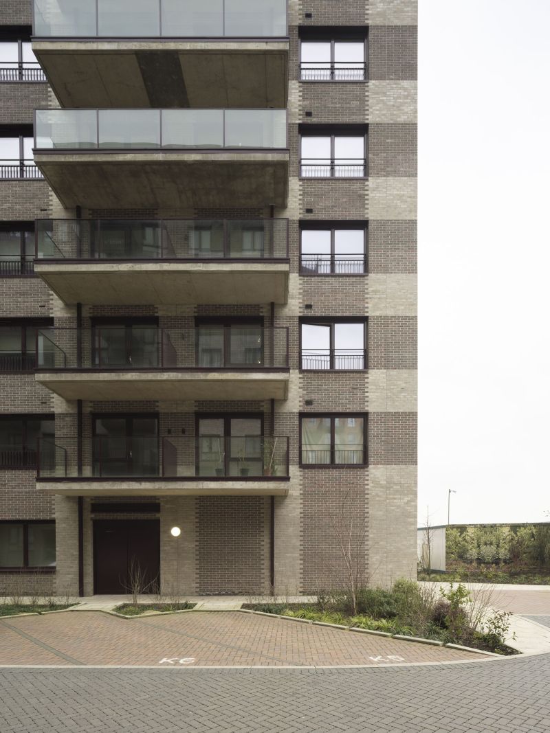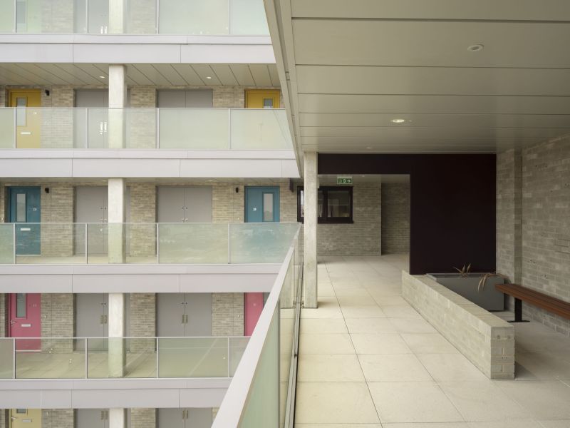 Barratt London’s brief to us was to design an Extra Care building with a flexible generic layout. The building is composed of sixty dual or triple aspect units, of which fifty-eight are one-bedroom units and two have two-bedrooms. The elevation is patterned like a warm protective blanket. The dwellings are distributed by a generous, external southern walkway facilitating orientation and sociability for residents. The ground floor is dedicated to communal uses for the extra care residents and organised around a green, southerly oriented communal garden.