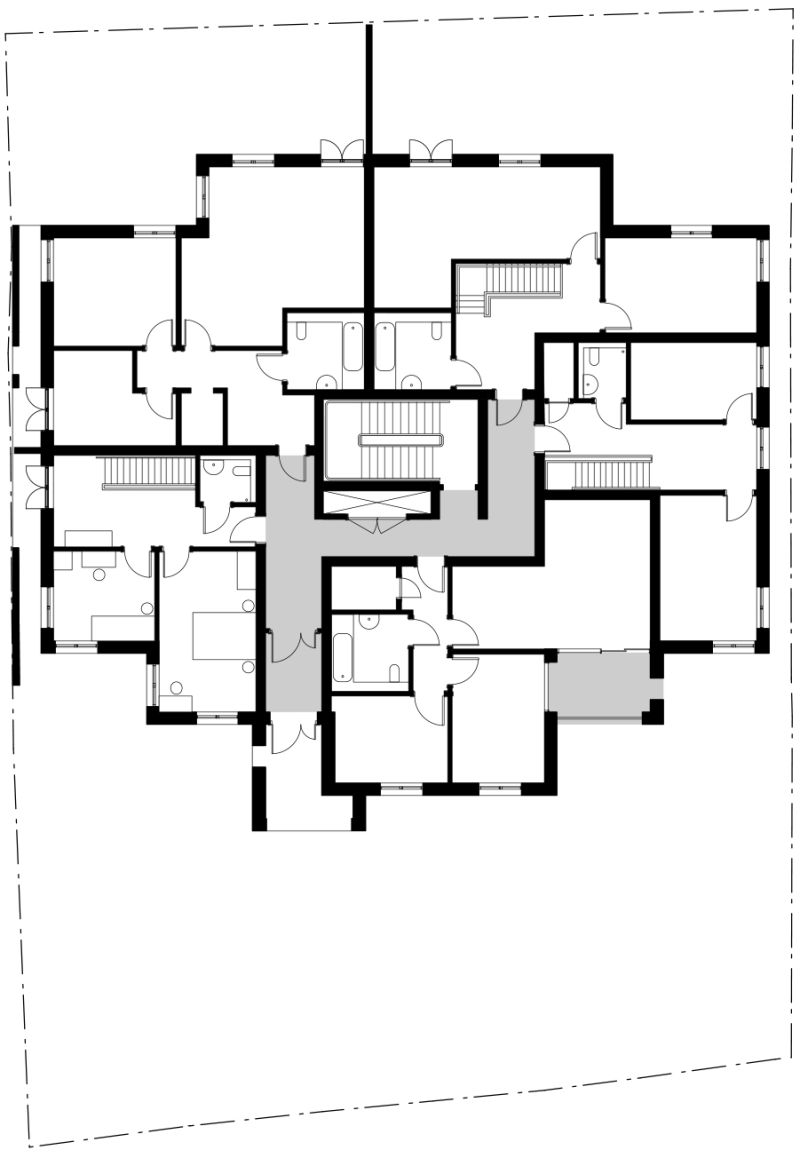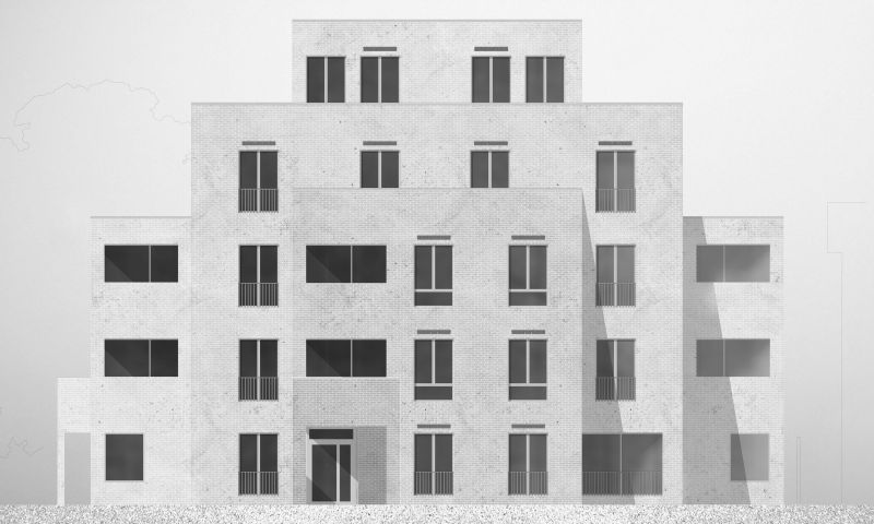 Although Romford Road hosts a number of car washes, hotels and HMOs, the nature of the street is distinctively wide, straight and leafy, its buildings set on generous plots. Thinking of La Rotonda by Palladio, seen from all sides, we felt a strong form here would be appropriate, being celebratory to the street as well as to its neighbours at the side and the back. Apartments within the building step above and across each other, offering multiple entrances, views and external spaces including porches, loggias, sunken and raised gardens, flights of steps, and roof terraces.