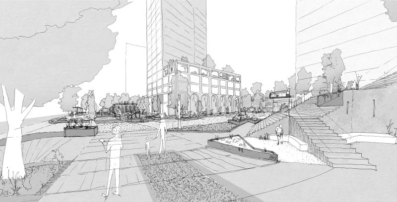 Urban design and public realm and landscape design for this residential led mixed use development in Ealing