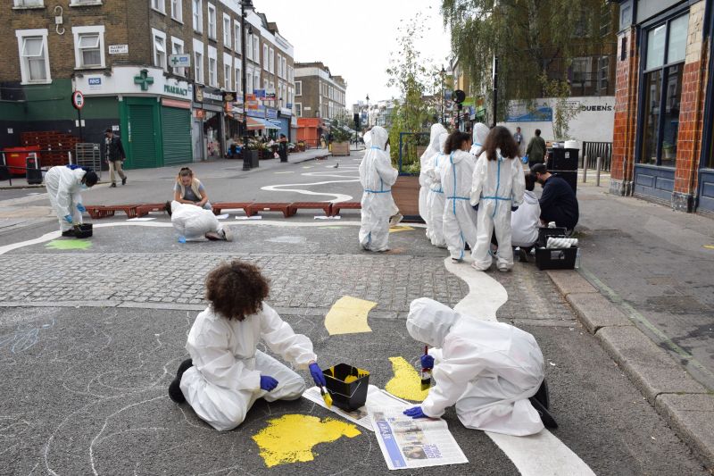 Queens Crescent is a Good Growth funded project by the GLA; it’s market was famous since 1876, but has more recently been in decline. Residents and Traders were wary of the promises of regeneration. In collaboration, East and The Decorators listened to residents and traders, also recording a podcast with interviews in the local library. Proposals for the street are sensitive to the lived experience of residents: gates restricting vehicular access on market days, technically superfluous but symbolically protective, were retained and repaired. The temporary and moveable nature of furniture allow for testing in different locations; alternatives for planting maintenance have been drawn up. The motif of a crescent shape has become an integral design element as something that is robust, yet frivolous and joyful; it reappears in the chosen signage, furniture and paving.