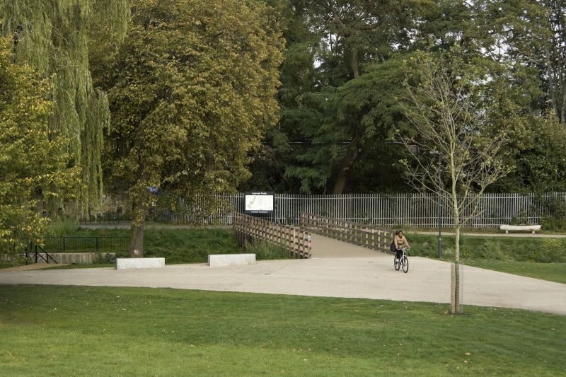 Building on earlier strategic work with various Local Authorities and the GLA; including the East London Green Grid and the South East London Green Chain we devised signage, new surfaces at park entrances, and cast iron roundels to reassure cyclists and pedestrians to use the 8 mile route that runs along rivers Pool and Ravensbourne and helps bring places such as Deptford Creek, Ladywell Fields and Beckenham Place Park together.