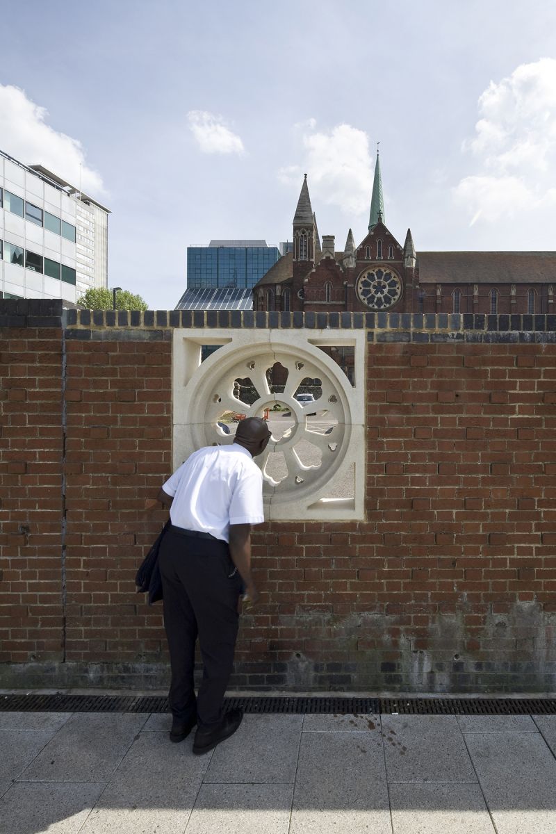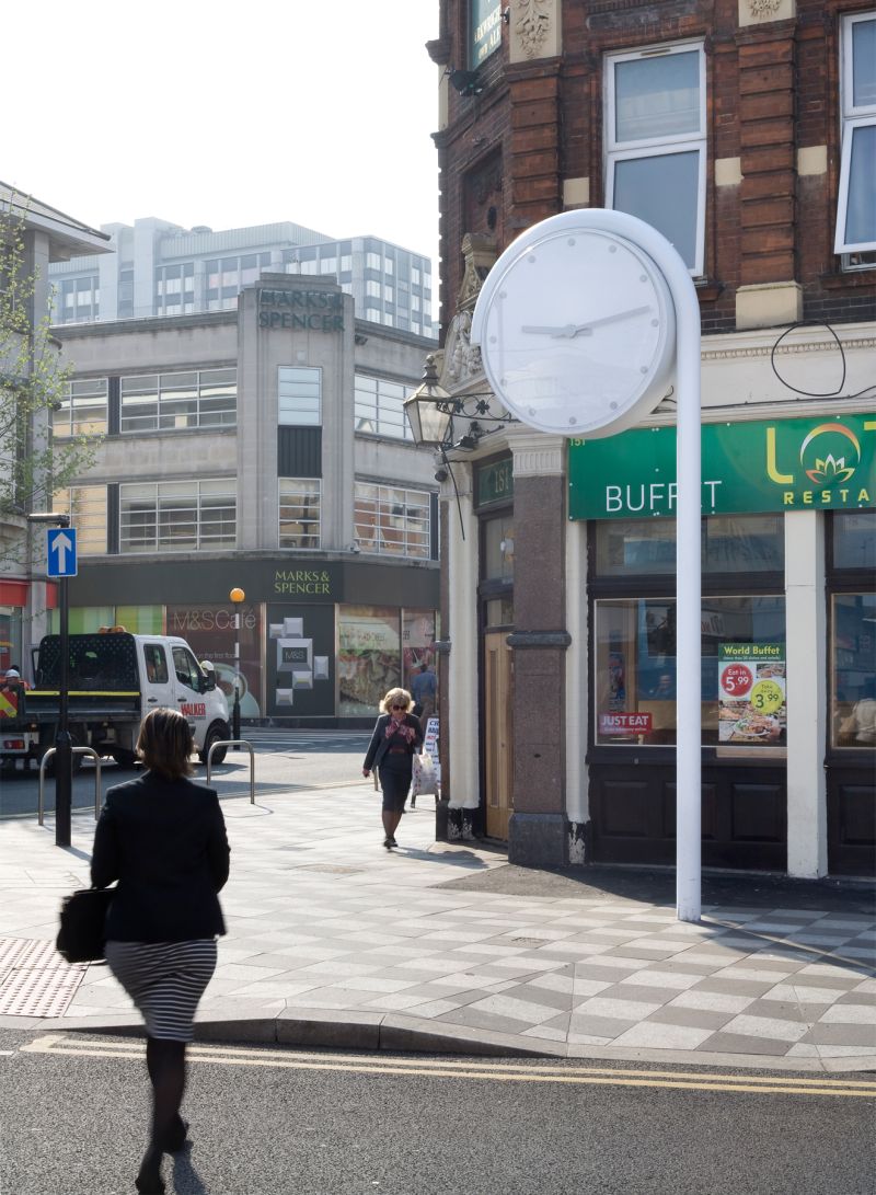 After we completed the West Croydon Masterplan we won the West Croydon Interchange Public Realm Project. The project, which stretches across the town centre, brings coherence to a fractured place. Throughout the design phase we worked with three London artists to engage with users of the place, the transport interchange and the Grade 1 Listed St Michael and All Angels Church. This led to a series of carefully targeted architectural and landscape interventions. Footways are widened, shop fronts improved and spatial connections emphasised through use of ordinary materials from the Council’s Public Realm Design Guide in combination with special moments. The distinctive checkerboard paving at the junction, colloquially called West Croydon Circus, the new station clock and the perch are located to give a view down a narrow street, falling away from London Road, to the Wandle Valley. Various transport spaces and slivers of footways are gathered into a coherent network of spaces that are a delight to be in, a destination in themselves. Emphasis is placed on making a new ‘front door’ to Croydon.