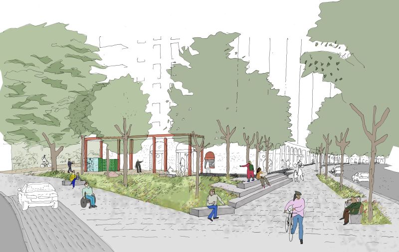 Our role was to provide and develop a public realm strategy aimed at shaping and bringing social identity to the linear development. The strategy takes a wider view of the area, helping to connect and integrate the site into the wider context. The scheme will deliver 852 new homes for rent and sale, including 50 percent affordable housing. Our detailed designs include a suite of new public spaces and community gardens at lower and upper levels, play facilities, amenities, a new public footway and special public spaces including a new brick colonnaded ‘public viaduct’ structure that re-imagines lost historic infrastructure and creates new uses within arched spaces, public rooftop garden spaces and a generous public terraced staircase for social activity and visibility.